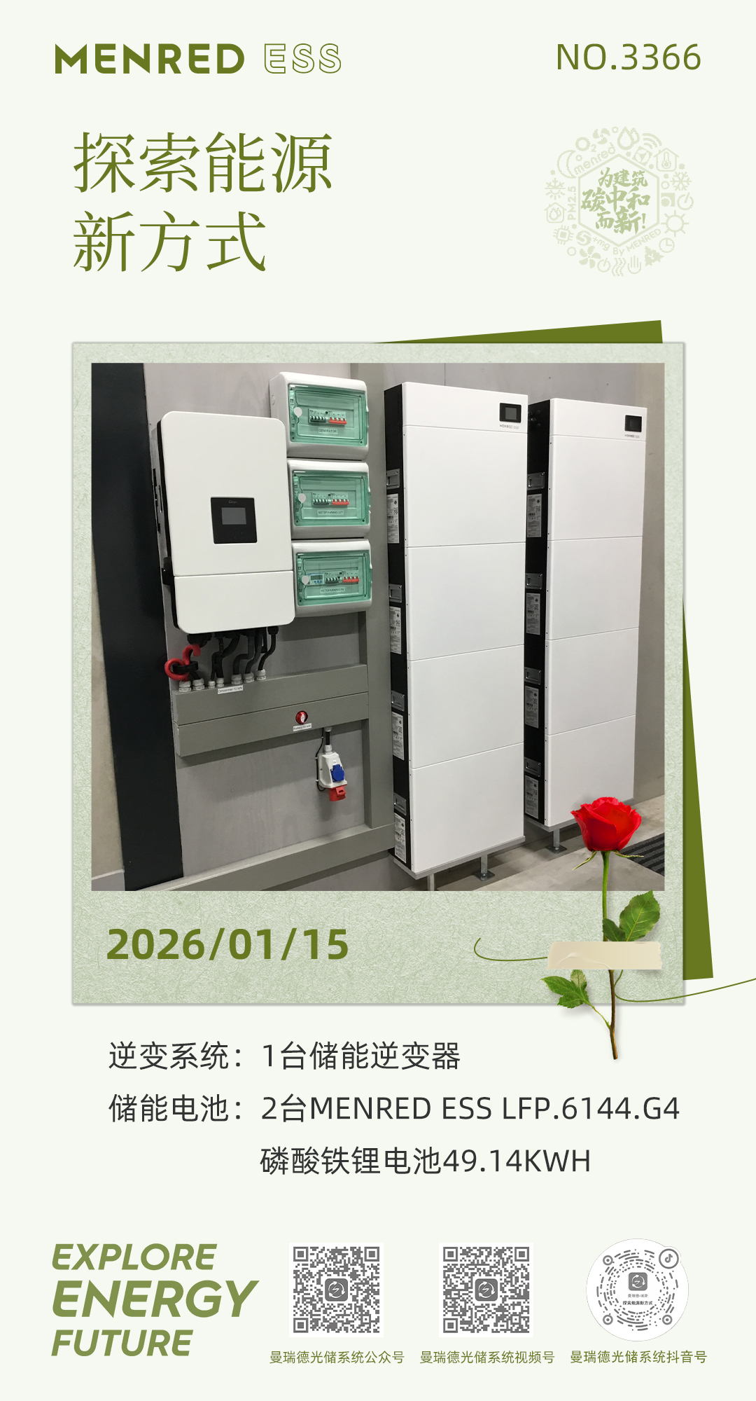 “ ” 曼瑞德光储系统,以1台逆变器和2台磷酸铁锂电池,总容量达到49.14KWh,为您...