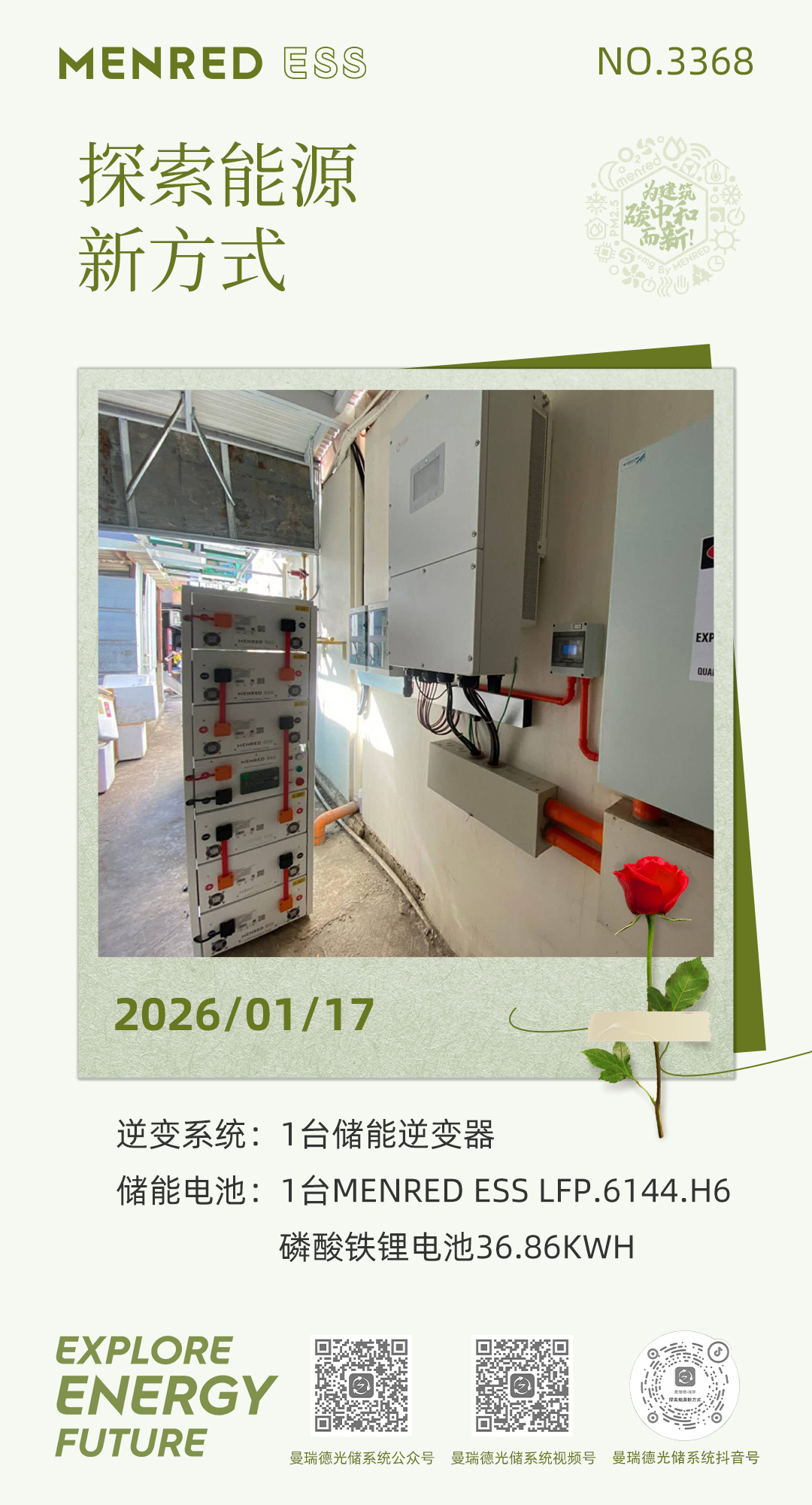 “ ” 曼瑞德光储系统,以6台逆变器和10台磷酸铁锂电池,总容量达到143.3KWh,为...