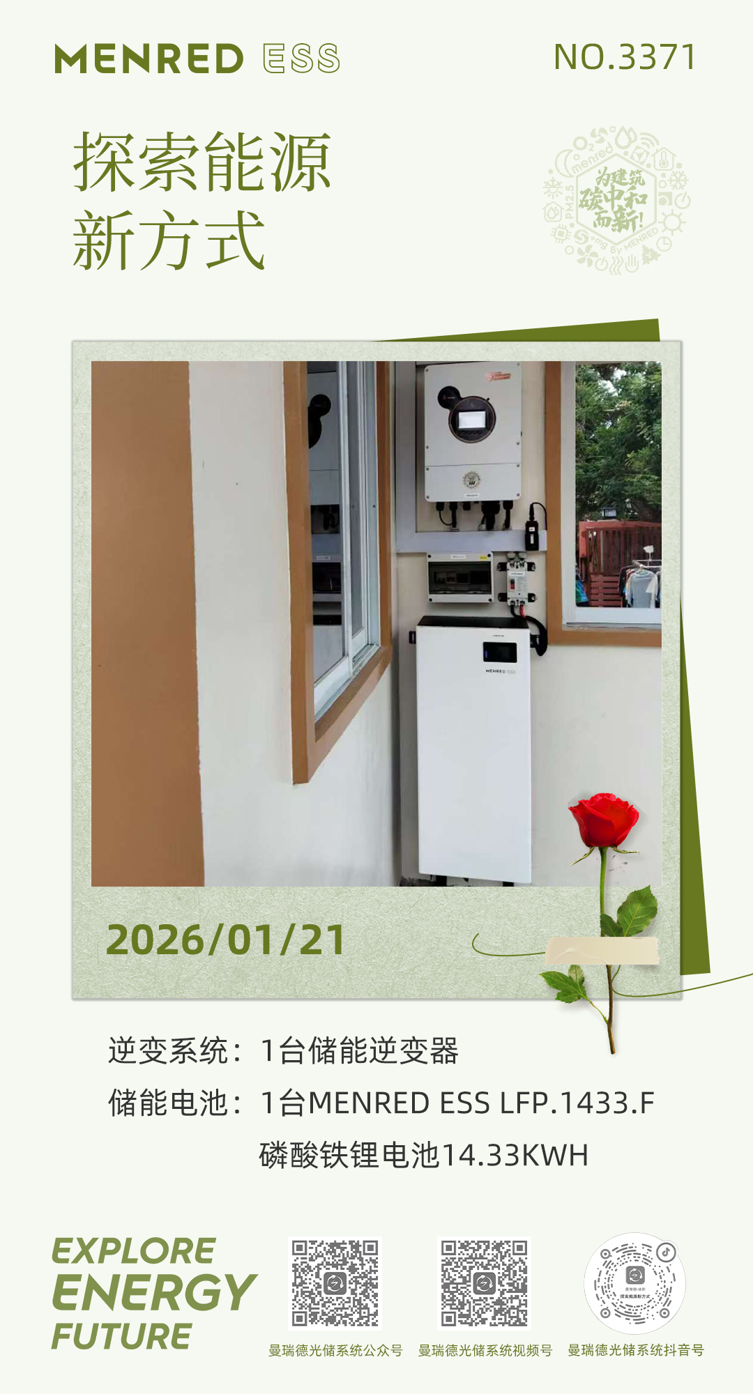 “ ” 曼瑞德光储系统,结合1台逆变器与1台14.33KWh磷酸铁锂电池,为您打造高效、...