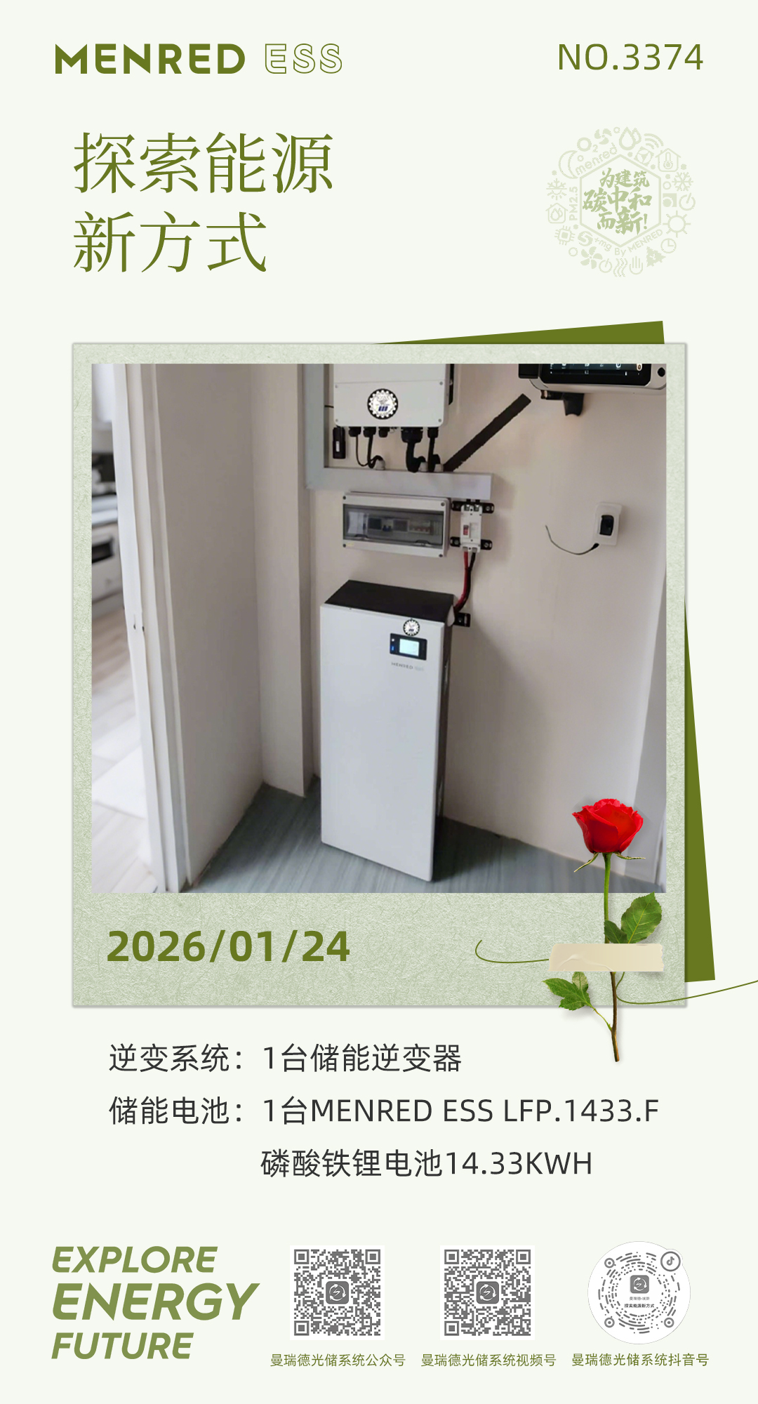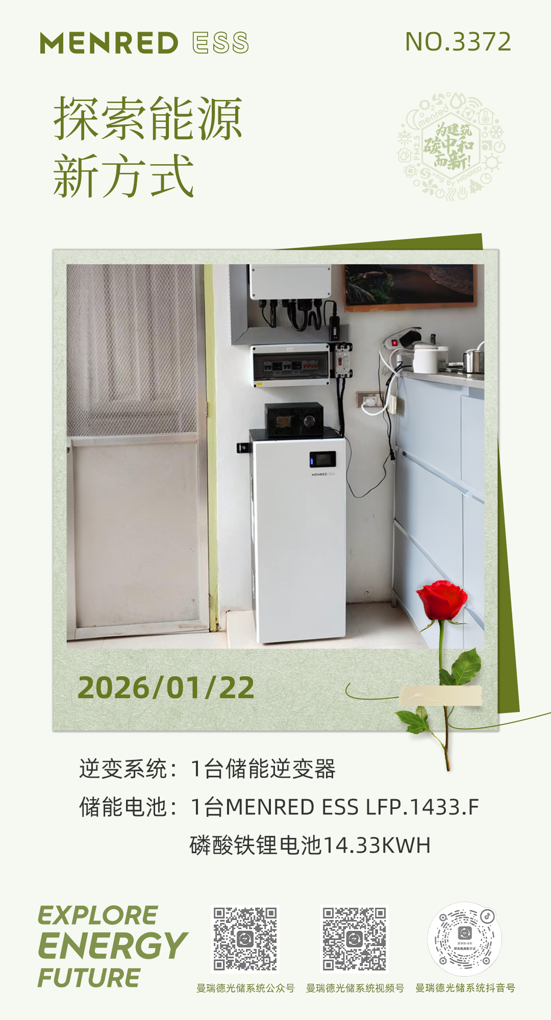 “ ” 曼瑞德光储系统,配备1台逆变器和1台14.33KWh磷酸铁锂电池,为您的家庭提供...
