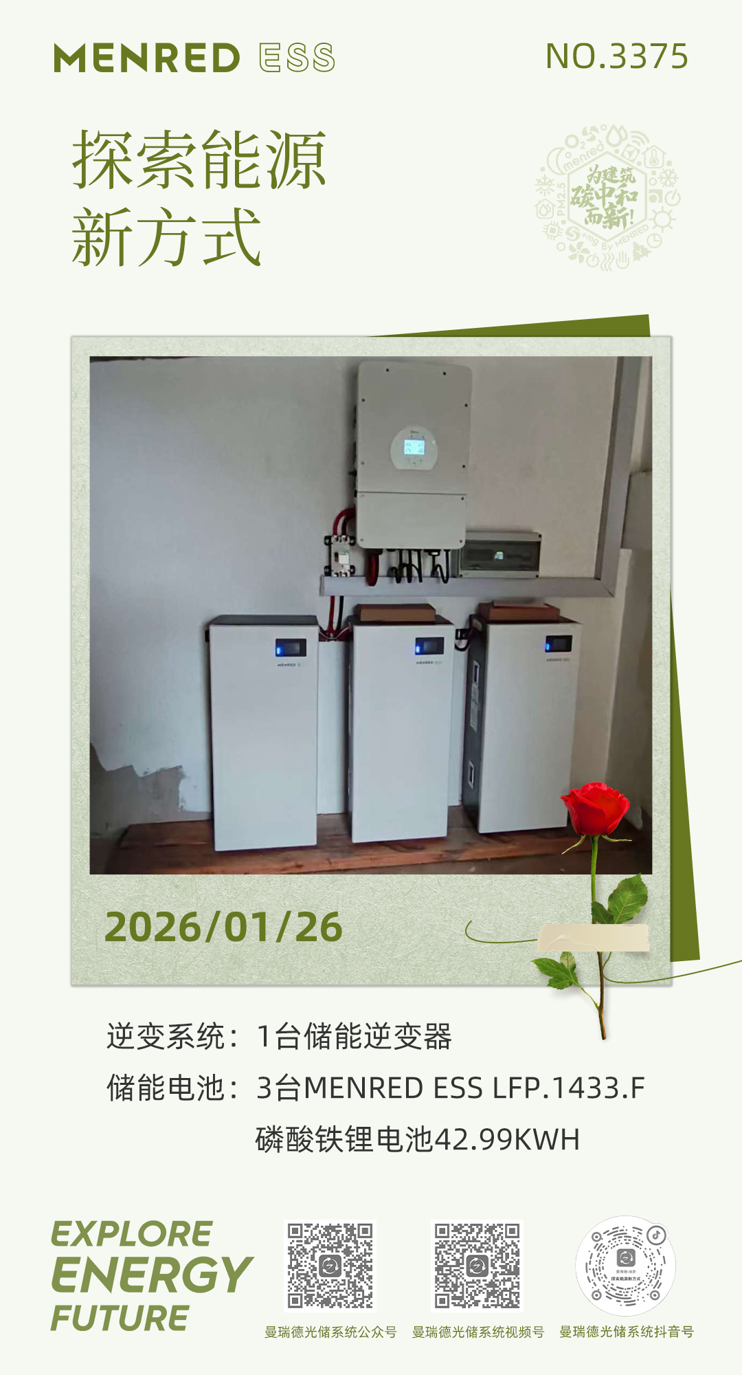 “ ” 曼瑞德光储系统,1台逆变器搭配3台磷酸铁锂电池,总容量达到42.99KWh,为您...