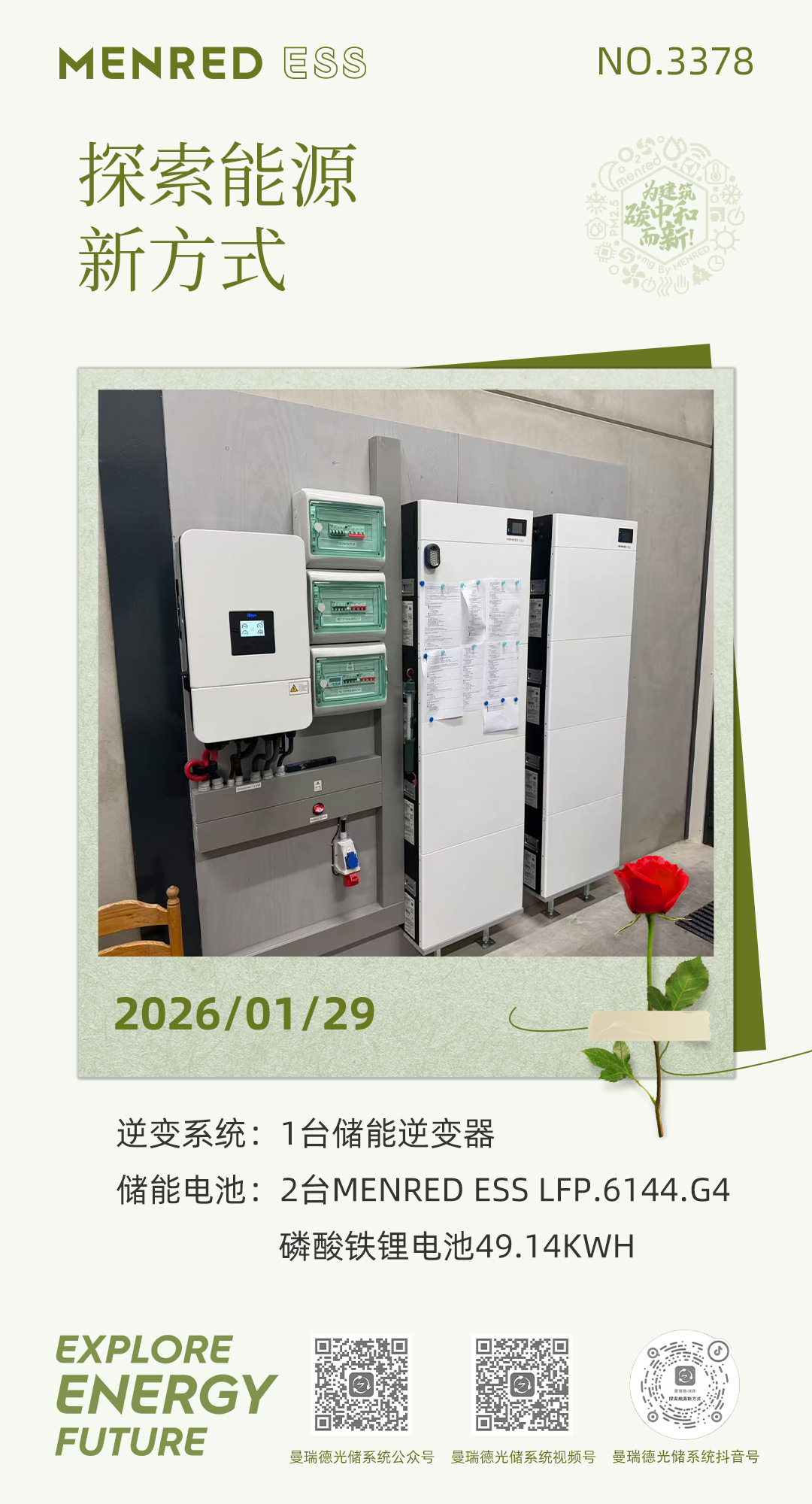 “ ” 曼瑞德光储系统,1台逆变器携手2台磷酸铁锂电池,49.14KWh超大容量,用电高...