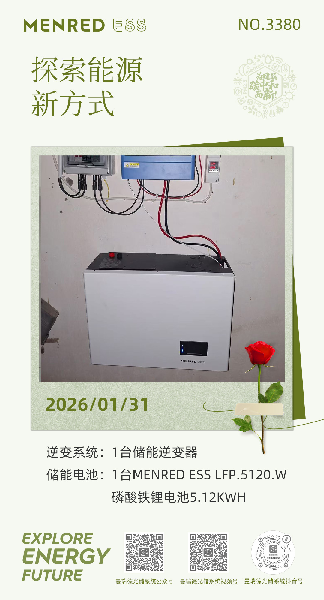 “ ” 曼瑞德光储系统,1台逆变器与1台5.12KWh磷酸铁锂电池的精巧组合,为您的家庭...