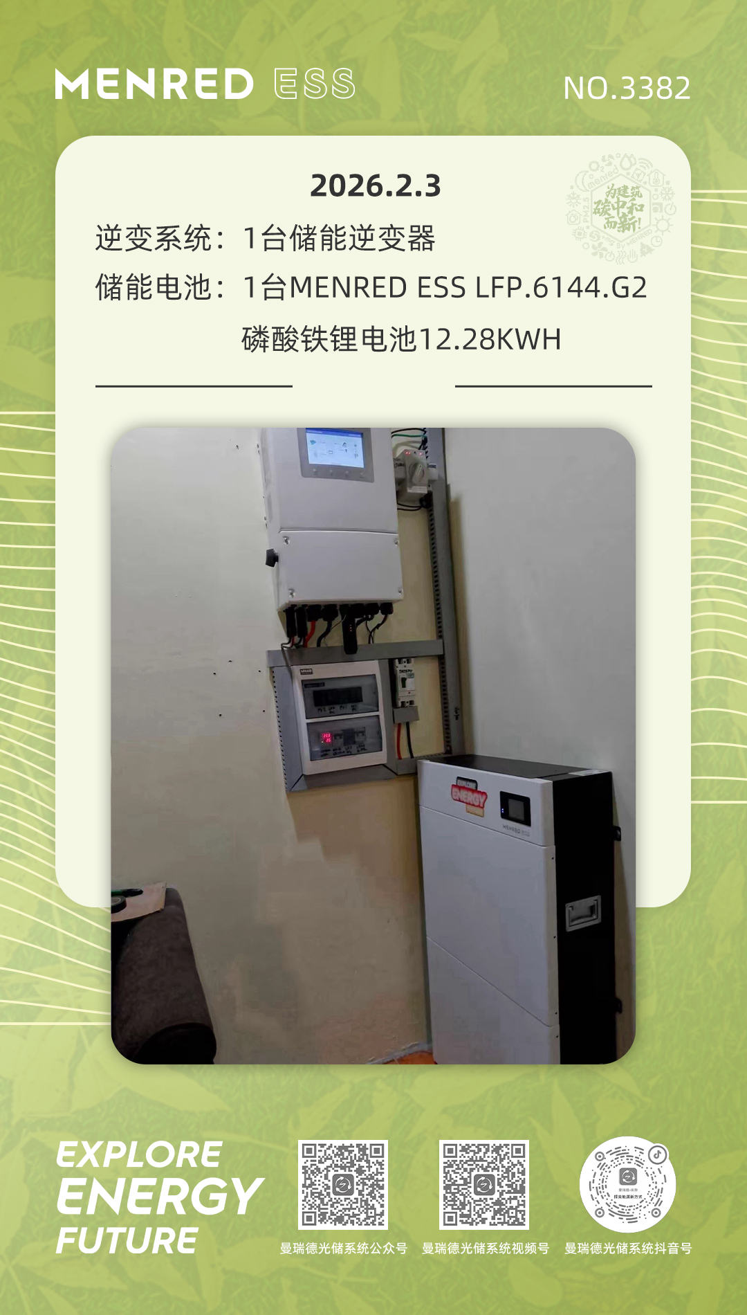 “ ” 曼瑞德光储系统,1台逆变器与1台12.28KWh磷酸铁锂电池的完美搭配,为您的家...