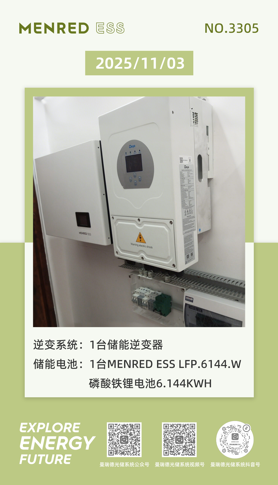 “ ” 迈向能源独立,选择MENRED ESS!系统包括1台储能逆变器,1台MENRED...