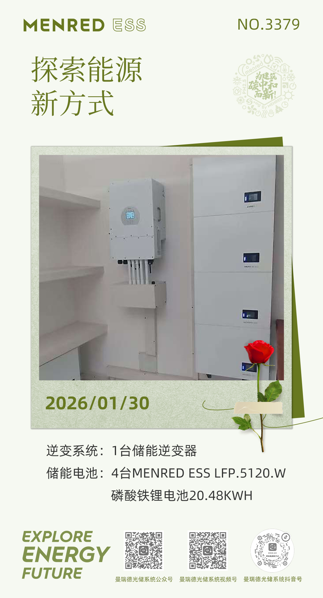 “ ” 曼瑞德光储系统,1台逆变器与1台5.12KWh磷酸铁锂电池的精巧组合,为您的家庭...