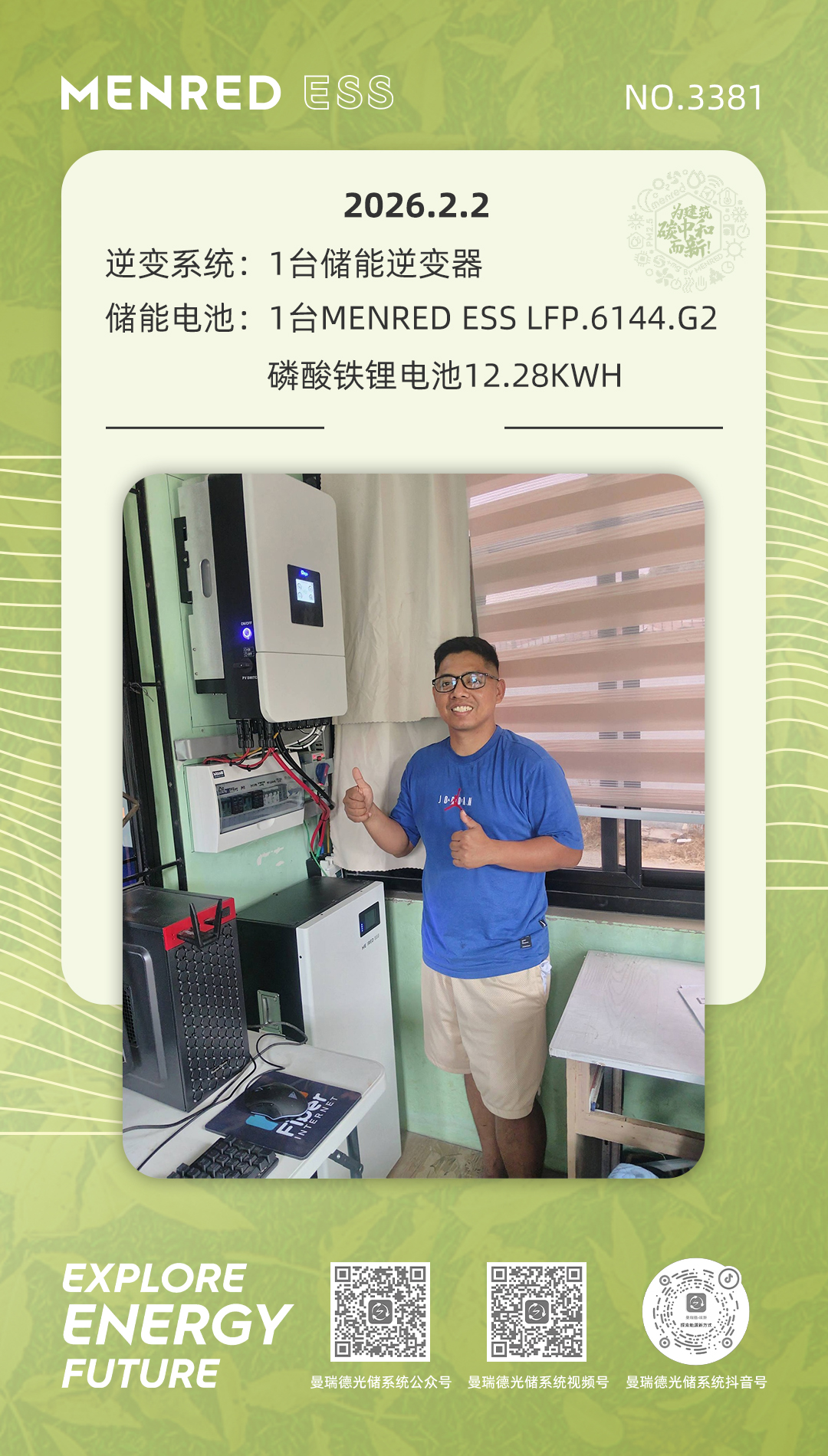 “ ” 曼瑞德光储系统,配备1台逆变器和1台14.33KWh磷酸铁锂电池,为您的家庭提供...